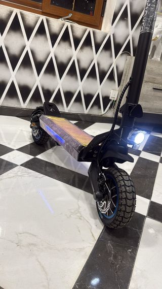 Patinete eléctrico Smartgyro Evo Pro con luces LED. - Diseño moderno y deportivo. - Ruedas todoterreno. - Pantalla digital. Esta deslimitado a 45km/h Le acabo de cambiar las ruedas Tiene 60km de autonomía Esta pintado entero de negro ¡Precio poco negociable!
