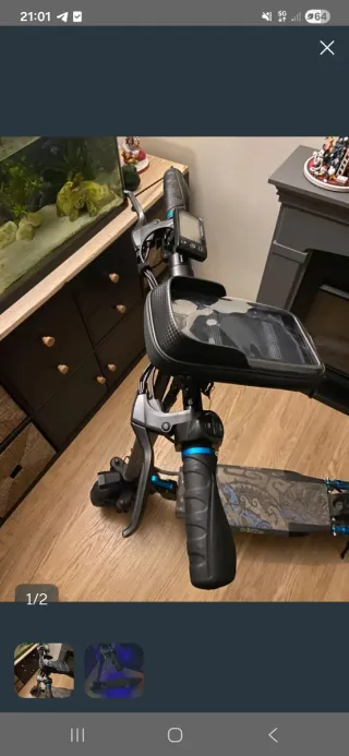 Se vende patin en perfecto estado solo tiene 200 kmtrs, se vende con caja cargador y factura se ha cogido 1 mes por rotura de vehículo principal y no se ha vuelto a usar, suspensión y puños cambiados.