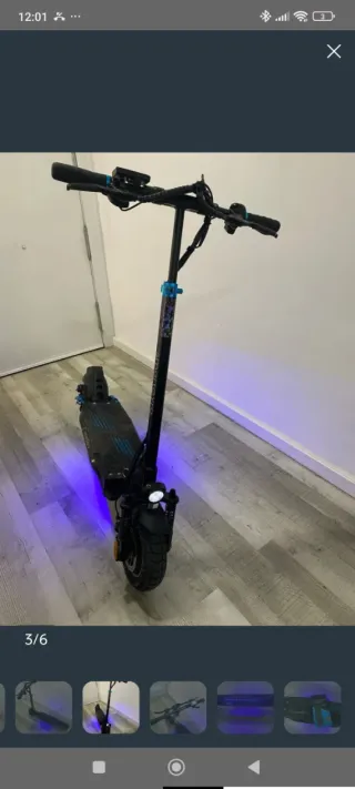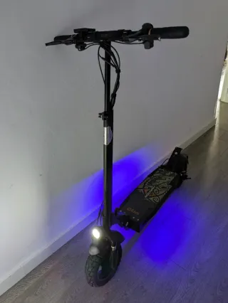 Patinete eléctrico en buen estado, listo para usar. - Homologado por la D.G.T. - Diseño moderno y funcional. - Manillar ajustable. - Plataforma antideslizante. - Luces Led en la plataforma - Autonomía de hasta 50km Ahora limitado a 25Km/h, se puede quitar la limitación hasta 55Km/h. En la actualidad tiene 200 km