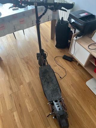 Patinete eléctrico en buen estado, listo para usar. - Modelo plegable para facilitar el transporte y almacenamiento. - Incluye batería y cargador. -tiene una bateria valorada en 300€ -controladora nueva -dgt -deslimitado -llave puesta -cargador rapido y herramientas -55km pero con la bateria llega a 100 -tiene pocos km -suspensiones cambiadas -frenos de discos cambiados ahora y ruedas igual -pata de cabra nueva -manillar de bici -mando limitador