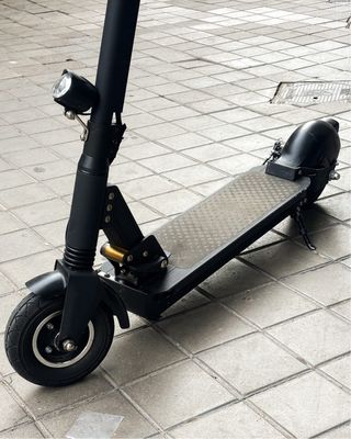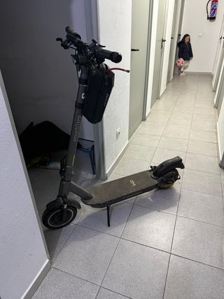 Display frontal (cuenta kilómetros parcial y total, marchas, indicador de velocidad, etc.). - Autonomía hasta 45 Km - Diseño plegable para facilitar su transporte. - Ruedas delanteras y traseras. - Freno trasero y delantero. - El patinete funciona perfectamente. - Tiene las dos ruedas cambiadas hace muy pocos meses. - Tiene el manillar en el lado izquierdo el embellecedor del intermitente roto y la luz del embellecedor rota. - tiene las gomas del manillar desgastados del Uso. - intermitentes derecho y izquierdo. - 25 km/h y des limitado 40km/h. -3015km tiene hechos