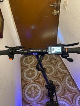 Patinete eléctrico Smartgyro Rockway en color negro con detalles en azul. Motor 800w y bateria 48v 15ah Velocidad de 45kmh y autonomia de 50km El patinete esta en perfecto estado tiene 1000km se compro en 600e no negociable ni ofertas absurdas gracias Unico defecto arreglar freno trasero