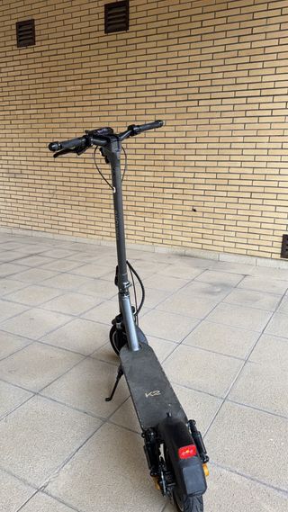 Patinete eléctrico Smartgyro modelo K2. Diseño moderno y funcional. - Manillar ajustable en altura. - Ruedas neumáticas para mayor comodidad. - Freno de disco trasero. - Plegable para facilitar su transporte y almacenamiento. - Incluye bolsa de transporte. El patinete tiene kilómetros pero va muy bien ha estado bien cuidado, tiene dos baterías una de 13ah y la exterior de 20ah tiene una autonomía de unos 80-90km reales , la rueda trasera está recién cambiada , y la delantera está bastante bien, se entrega con 2 cargadores y un casco