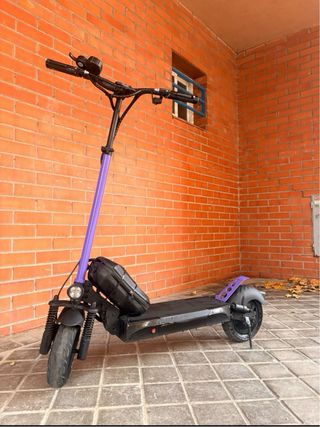 Patinete eléctrico SmartGyro Crossover Dual con modificaciones. Se entrega con 1500 km -Suspensiónes traseras mejoradas - manillar mtb bici - llave de contacto con voltimetro de display -bateria externa 48v 13 ah - motor delantero 48v 800-1000 pico - motor trasero de skate flash 1000- 1400 pico - mando limitador - intermitentes mejorados tipo moto Se entrega con dos cargadores y 2 pastillas de freno nuevas Detalles en color morado y negro