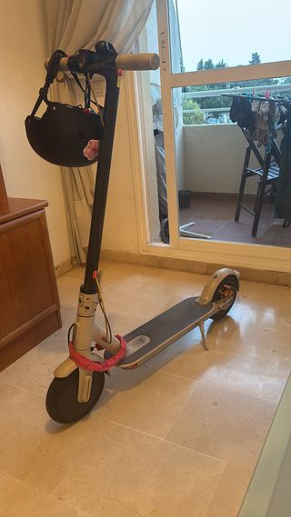 Patinete eléctrico de la marca Xiaomi, ideal para desplazamientos urbanos. - Diseño plegable para facilitar su transporte. - Manillar ajustable en altura. - Ruedas neumáticas para mayor comodidad. Funciona pero está bastante usado tengo también el cargador