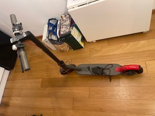 Patinete eléctrico en buen estado, ideal para desplazamientos urbanos. Se incluye cargador. - Color negro. - Plegable para facilitar su transporte. - Candado de seguridad rojo. hay que cambiar rueda trasera