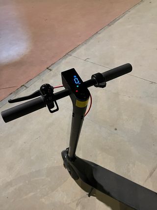 Patinete eléctrico de color negro, ideal para desplazamientos urbanos. - Manillar con puños grises. - Pantalla digital en el manillar. - Freno de mano. - Plegable. -Precio algo negociable