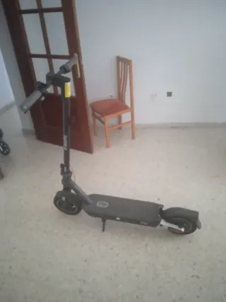 Patinete eléctrico de color negro, ideal para desplazamientos urbanos. Comprado en verano 2024 por 499€, caja incluida. Homologado. - Manillar con agarres texturizados. - Rueda delantera con guardabarros. - Plataforma antideslizante. Muy bien cuidado, solo lo he usado para moverme por mi barrio. Lo único que tiene es el guardabarros delantero un poco roto. Precio no negociable.