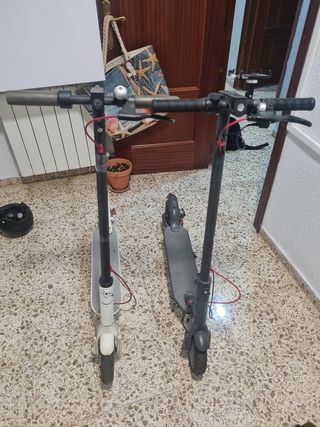 Se venden dos patinetes eléctricos, uno de la marca Xiaomi y otro Brigmton. Ambos presentan un fallo en la batería. - Patinete Xiaomi la Batería esta Ko, necesita sustituirse, pero el patinete tiene adaptación a ruedas de 10 pulgadas - Patinete Brigmton, la Batería funciona pero tiene poca durabilidad, unos 4-5 kilómetros, tiene rueda maciza delante y con cámara detras, regalo el soporte para móvil. Además Regalo 3 Cubiertas de 8,5 Pulgadas totalmente nuevas