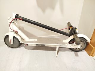 Patinete eléctrico Xiaomi en buen estado. - Color negro. - Diseño plegable para facilitar su transporte. - Batería en buenas condiciones - Tiene una rueda pinchada o deshinchada qué no lo se porque lo deje hinchado y ahora esta asi, el patinete anda perfecto lo vendo porque no lo uso, ya que me compré uno mas grande y este esta ocupando espacio, hay que cambiar la luz trasera de freno. Por eso eso el precio por su rueda y su luz, sino fuera eso lo pondría por mas dinero, una rueda 20 euros cámara y llanta les puedo decir donde cambiar y arreglar la luz muy barato.