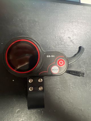 Pantalla de repuesto para patinete eléctrico modelo QS-S4. - Compatible con sistemas de 72V. - Diseño moderno con pantalla digital. - Incluye acelerador y botón de modo.