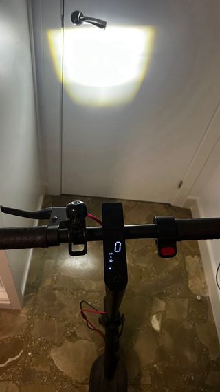 Luz delantera para patinete eléctrico. - Diseño ovalado. - Carcasa metálica y marco negro. - Cable con conector blanco.