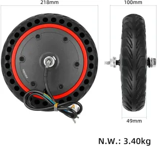 Rueda con motor para patinete eléctrico. Se incluye el cableado. - Conector de 5 pines. - Cables de colores: azul, amarillo, verde, rojo y negro. añade goma anti pinchazos