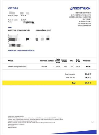 factura de compra del patin DGT FRENOS CAMBIADOS NUEVO nutts 4 pistones RUEDAS CAMBIADAS NUEVAS Mastil ajustado TABLA - BASE NUEVA Tiene pocos kilómetros echados Mando limitar NUEVO Se le hizo revisión y tiene todo bien y en perfecto estado 80 km de autonomía más o menos Coge más de 100 km en el aire y en tierra hasta 90 - 80 depende del peso con 2 personas 80 SE INCLUYE cargador original rápido (valorado en 100 euros) Y casco de moto No intercambios ni ofertas tontas no sé baja más el patín