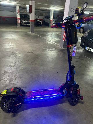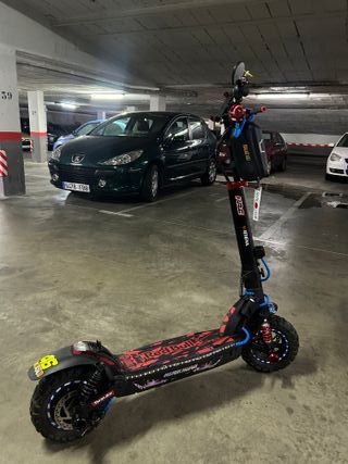 Mil km, casi todos hechos en carretera, muy pocos en ciudad, por lo cual esta nuevo. Ruedas de taco de 11", rueda de alante nueva y frenos nuevos.1200w pico bateria 48v y 55v pico EXTRAS: -Base redbull adaptada para el modelo(no existe de este modelo y se ha adaptado) -cubrecables por todo el patin -muchas pegatinas personalizadas -posamovil -retrovisor y pato en extension de manillar -4 pegs anticaida -detalles en las ruedas blancos y azules -cubremaneta de freno rojo -bolsa para guardar cosas personalizada con pegatinas y llavero -luces led azules en base y en los laterales. -puños protaper. -Suspension trasera mejorada