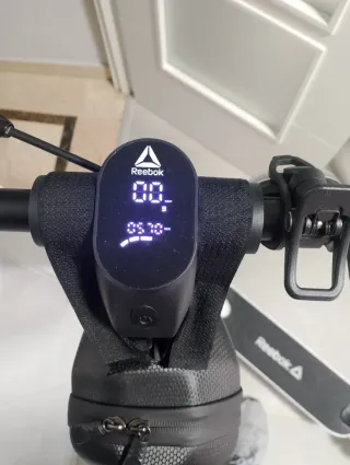 Patinete eléctrico de la marca Reebok. Diseño moderno y funcional. - Pantalla digital. - bolsa impermeable y candado incluida. - Logo de Reebok visible. Regalo casco , candado y mochila de manillar.Homologado por la DGT