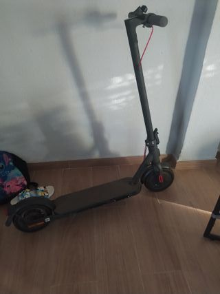 Patinete eléctrico Xiaomi en color negro. Ideal para desplazamientos urbanos. Tiene 3 años y ha sufrido una caída que rompió el timbre y arañó un poco el faro, pero nada más. -Batería en buen estado y aguanta de 10-15 km. - Diseño plegable para facilitar su transporte. - Rueda delantera con freno de disco. -Ruedas anti pinchazos macizas ( de goma dura rígidas, no con cámara de aire)