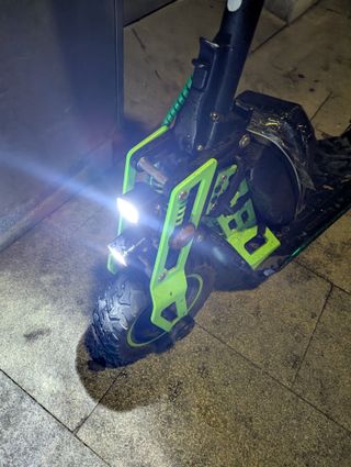 Patinete eléctrico Ecoxtrem con modificaciones. - Batería nueva externa de 48v 20-25amh + la bateria interna. - Color verde y negro. - Rueda delantera con banda de rodadura marcada. - Faro LED frontal. - Incluye Llave - Aguanta movíl
