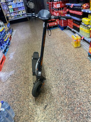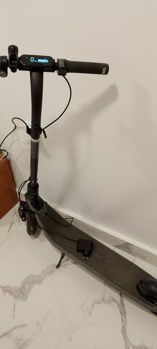 Patinete eléctrico en color negro, ideal para desplazamientos urbanos. poco usado. Tiene la rueda de alante nueva. Tiene un trozo del guardabarros trasero partido, esta pegado con cinta americana.Se puede ver en una de las fotos. Necesita algún apriete de tuercas para hacer buen ajuste. No se hacen envíos. Se recoge en coslada - Diseño moderno y funcional. - Manillar con controles integrados.