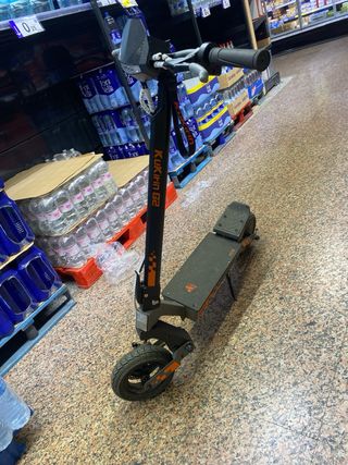 Patinete eléctrico Kukirin G2 en color negro y naranja. Diseño moderno y deportivo. - Manillar con controles integrados. - Rueda delantera con suspensión. - Plataforma antideslizante. -600km -nuevo - con cargador original -precio negociable