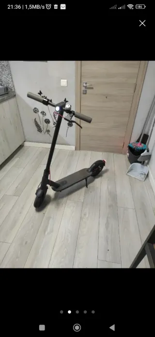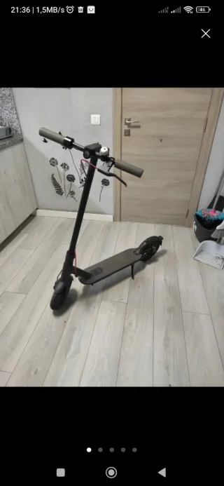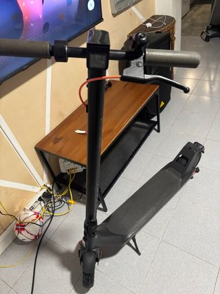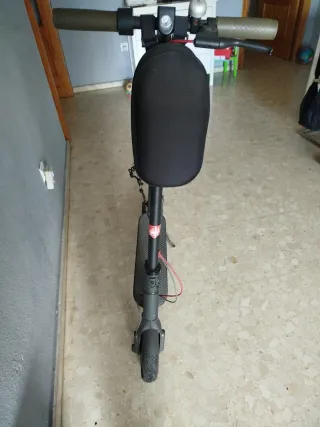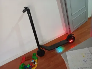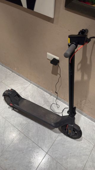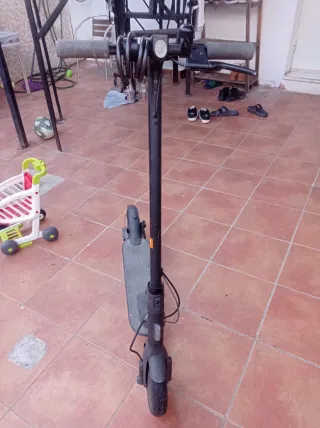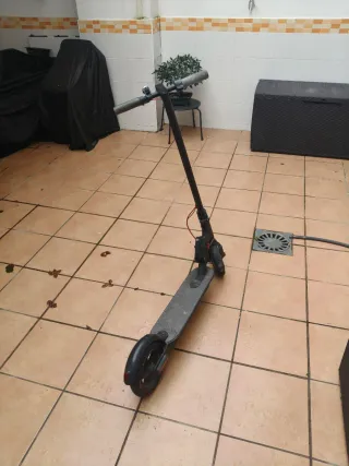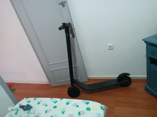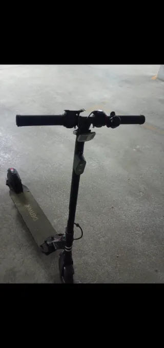 Patinete eléctrico en color negro, ideal para desplazamientos urbanos. - Diseño plegable para facilitar su transporte. - Ruedas delanteras y traseras. - Manillar con agarres ergonómicos. Esta en buenas condiciones se entrega con cargador tiene 40km de autonomía Precio negociable