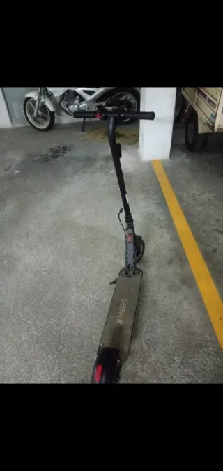 Patinete eléctrico en buen estado, ideal para desplazamientos urbanos. Diseño moderno y funcional. - Color gris con detalles en negro. - Plataforma antideslizante. - Ruedas resistentes.