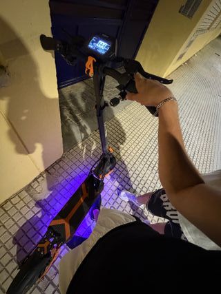 Patinete eléctrico Kukirin G2 modelo 2024. Diseño moderno y deportivo. Lo compre a finales de diciembre de 2024 (Tengo todos los papeles) - Manillar con puños naranjas. - Pantalla digital en el manillar. -Tiene una caida, por eso mismo esta raspada la careta - Plataforma antideslizante.