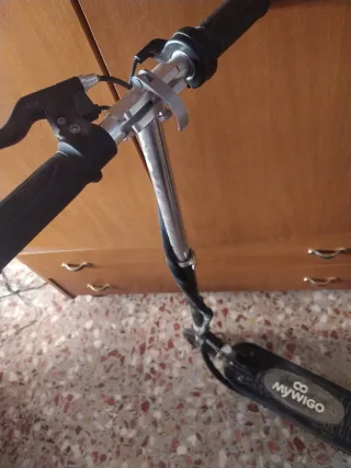 Patinete eléctrico infantil de la marca MyWigo. Ideal para los más pequeños. La batería está para cambiar de ahí su precio - Diseño plegable. - Freno manual.