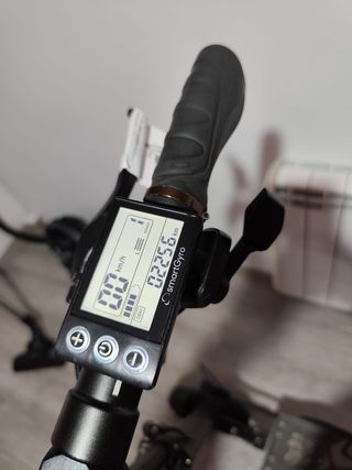 Patinete eléctrico Smartgyro Way Pro. Batería cambiada en Agosto, demostrable con factura. 3 velocidades, con la 1 se llega hasta 16 km/h, con la 2 hasta 25 km/h y con la 3 hasta 37 km/h máximo. Se añade una llave especial para poder quitar la holgura que se produce con el paso del tiempo y que si lo llevas al taller te van a cobrar más de 20 € cada vez. Las luces de abajo hay que revisarlas y le falta emnbellecedor de donde se ponen las luces. - Diseño moderno y funcional. - Plataforma antideslizante. - Ruedas resistentes neumáticas. - Frenos de disco.