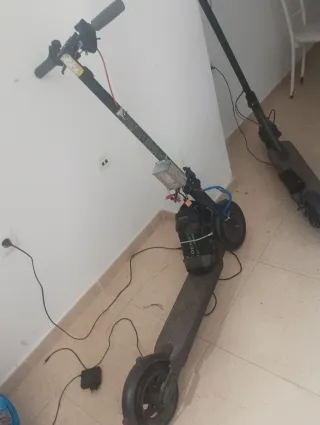 Se venden dos patinetes eléctricos, uno en color blanco y otro en negro. Ideales para desplazamientos urbanos. - Diseño moderno y funcional. - Manillar ajustable. - Ruedas resistentes. Mirar las ruedas que no sé si está pinchada o solo hay que llenarla y mirar algún tornillo o cambiar algo de la barra. No cambio por nada.