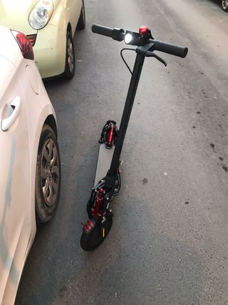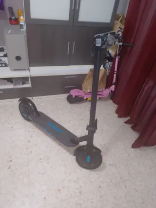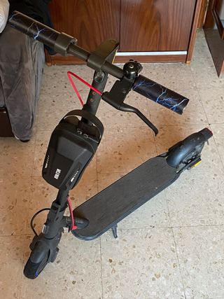 Patinete eléctrico en buen estado, ideal para desplazamientos urbanos. - Diseño plegable para facilitar su transporte. - Ruedas con buena adherencia. - Puños de goma para un agarre cómodo.