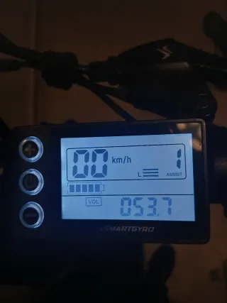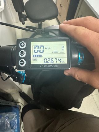 Patinete eléctrico SmartGyro Rockway en buen estado. Ideal para desplazamientos urbanos. - Pantalla digital con información de velocidad y distancia. - Batería con indicador de carga. - Sistema de asistencia al pedaleo. Error 10 por un cable pelado Que habria que arreglar y eñ guardabarro de atras mordido por el perro como se ve en la foto esta deslimitado