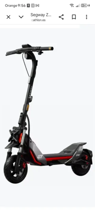 Patinete eléctrico Segway ZT con un diseño deportivo y moderno. - Color negro y rojo. - Ruedas todoterreno. - Plataforma antideslizante.
