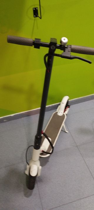 Patinete eléctrico Xiaomi en color blanco. Ideal para desplazamientos urbanos. - Diseño plegable. - Manillar con puños texturizados. - Freno manual. - muy poco usado