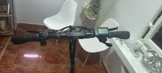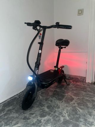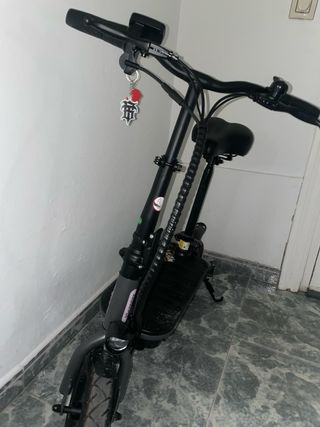 Patinete eléctrico en color negro, con asiento incluido. Tres modos ECO . TOUR . SPORT No tiene ni un mes de uso - Rueda delantera con luz. - Luces traseras rojas. - Pata de apoyo.