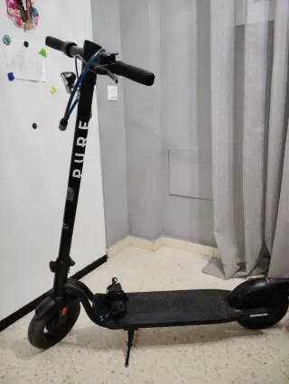 Patinete eléctrico de color negro, con un diseño moderno y funcional. Es plegable para facilitar su transporte y almacenamiento tiene muy poco uso urge por falta de espacio - Marca: PURE - Color: Negro - Plegable