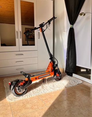 Patinete eléctrico KUKIRIN G2 MAX en color negro y naranja. Motor 1000W. - Diseño moderno y deportivo. - Ruedas de gran tamaño 10.0 - Manillar ajustable en altura. -Amortiguadores regulables. - Plataforma antideslizante. -Llave de contacto (2). -Velocidad 25km/h se puede deslimitar i limitar. -Frenos de disco. -Luces LED. -Tiene 1 año de uso. -Tengo la factura del patinete.