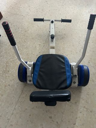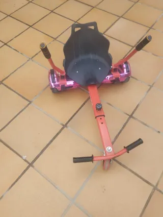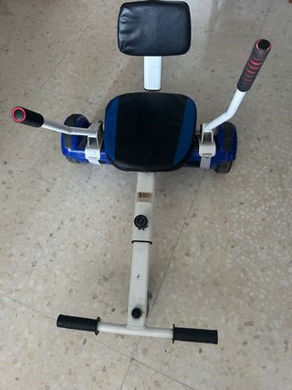 Patinete eléctrico tipo hoverboard con asiento y manillar. - Asiento acolchado. - Manillar con empuñaduras. - Ruedas de 6.5 pulgadas. Lo k le falta el cargador