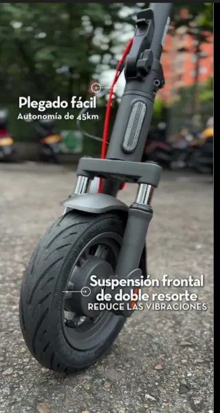 Patinete ágil, urbano y con bateria extra. Que se puede quitar fácilmente. Motor con potencia nominal de 400W 36V (pot. pico de 800w). Doble Batería de litio eficiente y estable de 10,4 Ah autonomía de hasta 45 kms. -Carga rápida -Ruedas masizas, resistentes y estables. Especialmente indicada para el asfalto. - Suspension Amortiguadores delantero y trasero. -Velocidad máxima de 25 kms modificable con la app de 6 a 32 kmh depende del país en el que estés. -Luces led, reflectantes y luces personalizadas de colores - Número de serie para circular legal con todo Homologado DGT. - Plegable ideal para guardarlo en el maletero del coche.