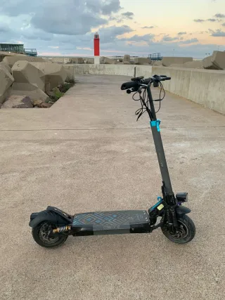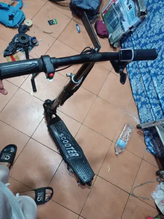 Patinete eléctrico en buen estado, la bateria le va bien tiene un poco de orgura en tema de batería duracion y eso todo bien puedo limpiarlo antes de la entrega. - Color negro. - Rueda delantera y trasera. - Freno de disco.