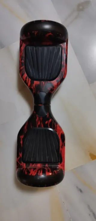 Patinete eléctrico tipo hoverboard con un diseño llamativo en rojo y negro.Sin cargador - Ruedas con luces LED. - Diseño tipo llama. - Plataformas antideslizantes.