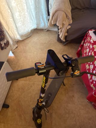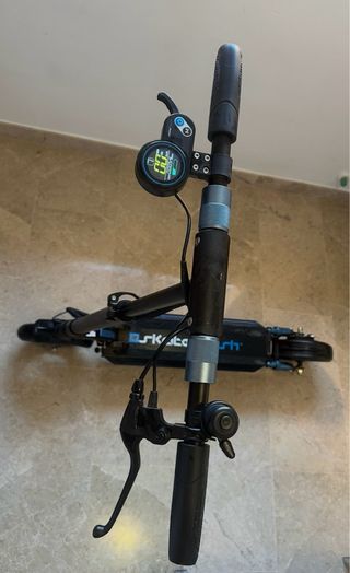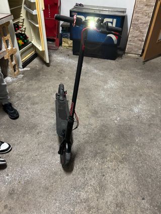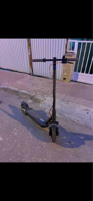 Patinete eléctrico de color negro, con un diseño moderno y funcional. Es fácil de plegar para su transporte el patín lo compré en julio de 2025 apenas tiene unos meses de uso lo quiero cambiar por qué saque el carné de conducir y ya no lo necesito tengo su factura cualquier problema que tengáis podéis localizarme y lo resolvemos juntos Gracias y un saludo - Manillar ajustable. - Ruedas de goma. - Freno trasero. - Factura de patinete eléctrico