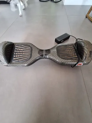 Patinete eléctrico tipo hoverboard con acabado en fibra de carbono. - Diseño deportivo y moderno. - Plataformas antideslizantes para mayor agarre. - Incluye cargador.
