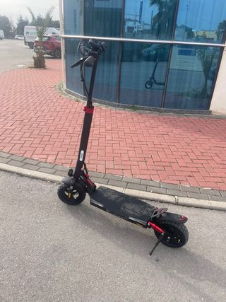 Patinete eléctrico con un diseño deportivo en rojo y negro. - Plataforma con franjas rojas. - Ruedas anchas para mayor estabilidad. - Suspensión delantera y trasera. Lo vendo por falta de espacio