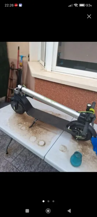Vendo patinete eléctrico. Lo compramos hace dos años y hace unos meses dejamos de usarlo, por eso lo vendo. 🔧 Detalles importantes: • Marca error E2 en la pantalla desde que se rompió una vez. Me dijeron que no se puede quitar. • Por el error no se ve la velocidad en la pantalla, pero el patinete funciona. • El guardabarros está suelto para cambiar. • El freno a veces no funciona bien (habría que revisarlo). ⚡ Modos de velocidad: • 🟢 ECO: hasta 5 km/h • 🔵 D: hasta 15 km/h • 🔴 S: hasta 25 km/h 💡 Tiene luz delantera y trasera. 🔌 Incluye cargador. Ideal para quien quiera arreglarlo y usarlo. Pero tiene sus detalles.