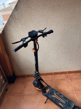 Patinete eléctrico Kukirin G2 con un diseño deportivo y llamativo. - Color principal negro con detalles naranjas. - Plataforma ancha para mayor comodidad. - Ruedas todoterreno. Totalmente nuevo ninguna orgura ningun fallo Se vende por falta de uso manillar cambiado por 15 euros mas vendo el largo pero tengo con el que vino con el patin viene con cargador totalmente nuevo