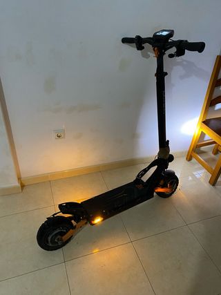 Patinete eléctrico de color negro, 60V y 38Ah. Tiene una autonomia de 100km y pilla 100km/h-90km/h con apenas 1000km y nuevo cuesta 1700€ que doy con factura de compra, neumáticos de competición cambiado el 30 de diciembre, ambos frenos nutt con ambas pastillas de frenos cambiadas igual que los discos de frenos, doy con los dos mandos uno de limitación y otro de encender, apagar y alarma del patinete, obviamente con su llave y cargador. Perfecto para ir a lugares lejos y rapido, con manillar ajustable (Vendo o cambio por moto 49cc)