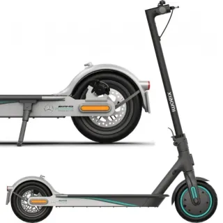 Patinete eléctrico Xiaomi Pro 2 con diseño especial AMG Petronas. - Edición limitada. - Colores gris, negro y detalles en verde azulado. - Logo de AMG Petronas visible.