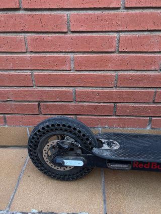 Patinete eléctrico con diseño inspirado en Red Bull Racing. - Ruedas todoterreno. - Manillar ajustable. - Freno delantero y trasero. - problemas con la baretia, a veces carga a veces no quiere cargar, seguro tendra algun cable suelto o algo similar la verdad lo vendo para repuesto o al que quiera arreglarlo y usar, va bien lo pagué 370€ en el alcampo