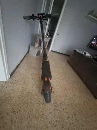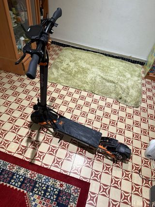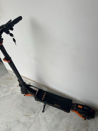 Patinete eléctrico Kukirin G2 Pro en color negro y naranja. Diseñado para ofrecer una experiencia de movilidad urbana. - Pantalla digital multifunción. - Diseño plegable para facilitar su transporte y almacenamiento. - Ruedas de gran tamaño para mayor estabilidad. Usado está bien estado le funciona todo tiene su sillín se puede limitar y deslimitar